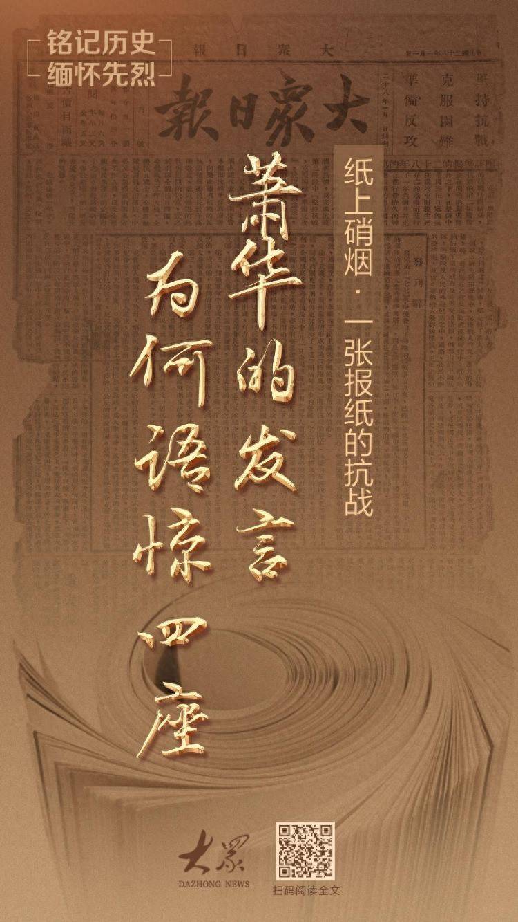今年是中国人民抗日战争暨世界反法西斯战争胜利80周年。弘扬伟大抗战精神,对大众报人而言,既是庄严的时代使命,也是对自身光荣历史与办报初心的回望与传承。8月6日起,大众日报推出“纸上硝烟·一张报纸的抗战”系列报道,讲述一张报纸的抗战,也讲述一张报纸记载的抗战,传承红色基因,凝聚奋进力量。