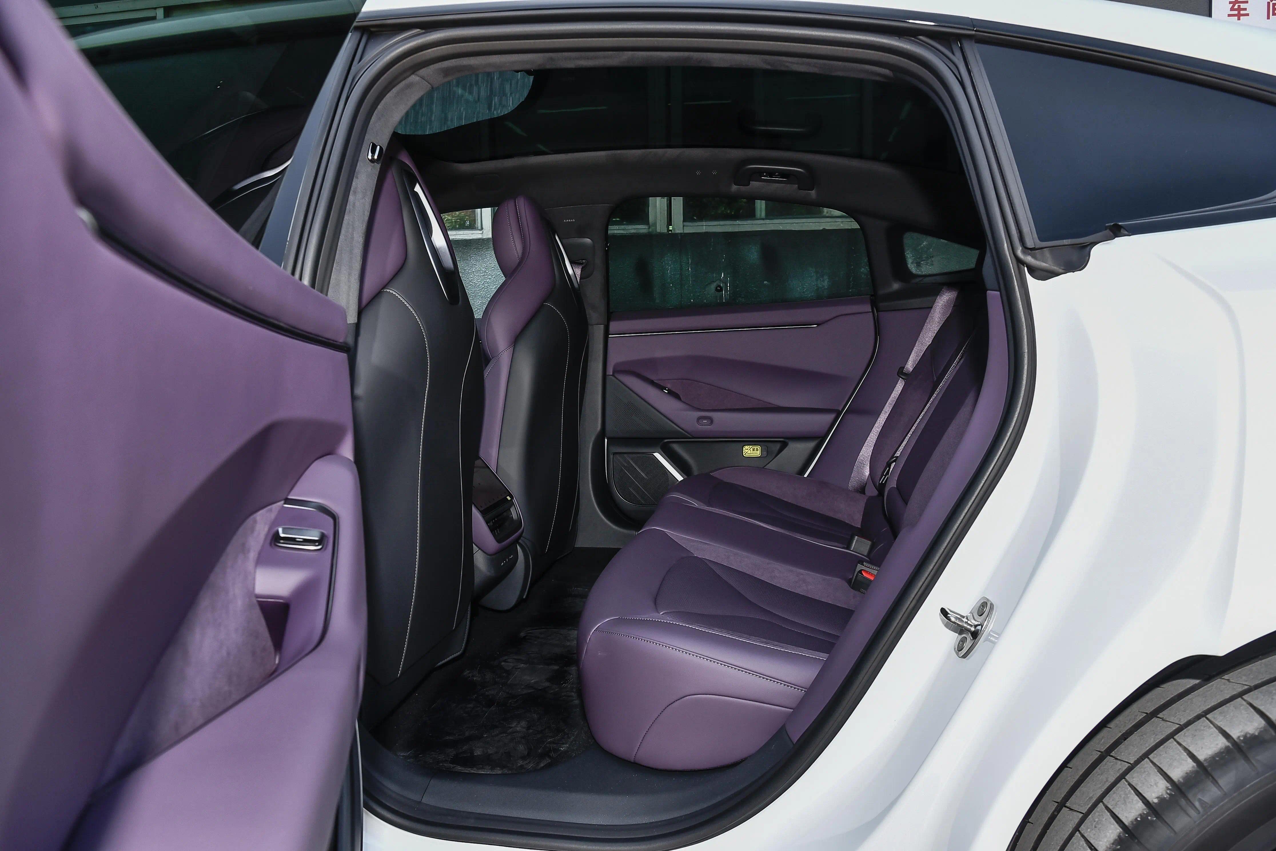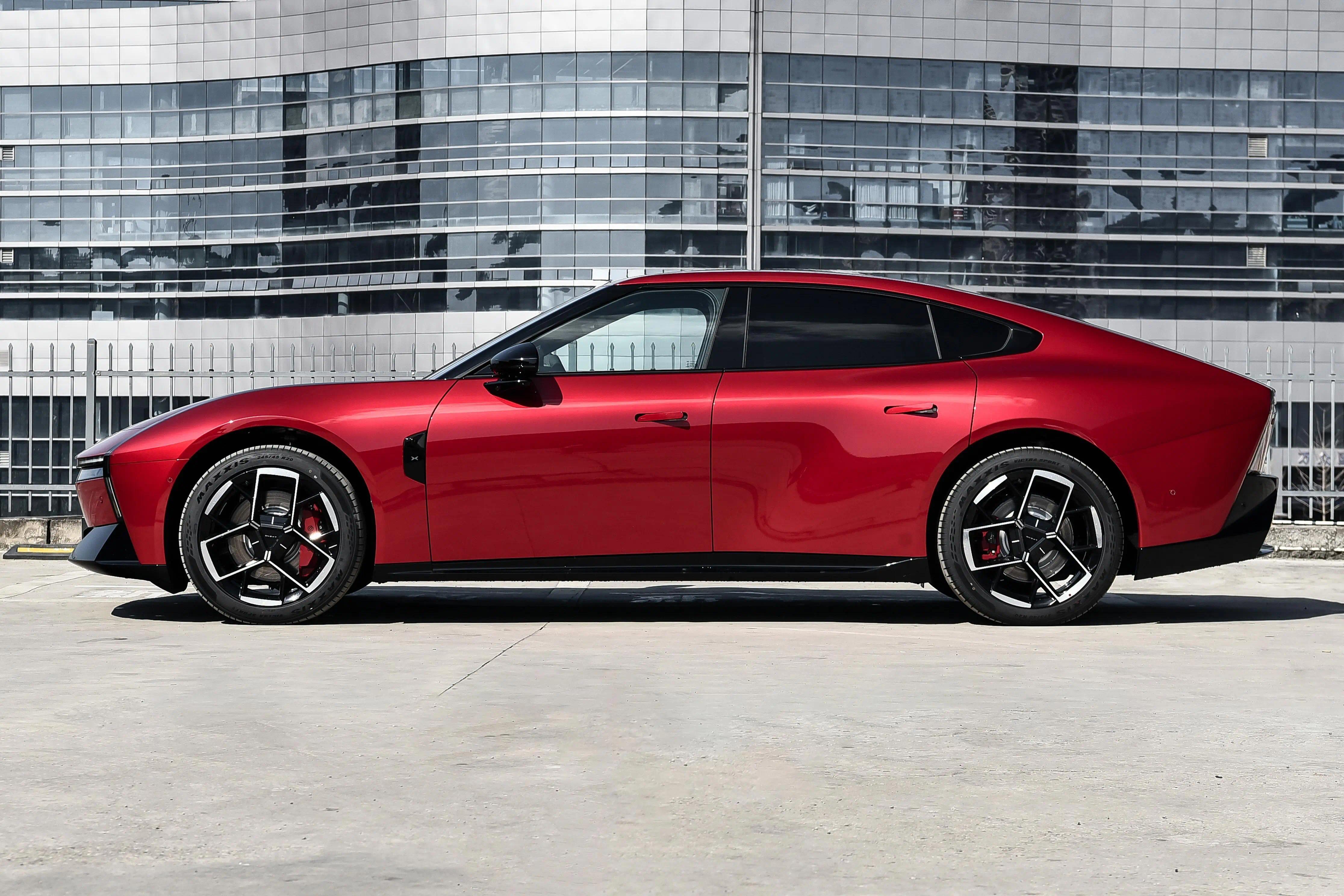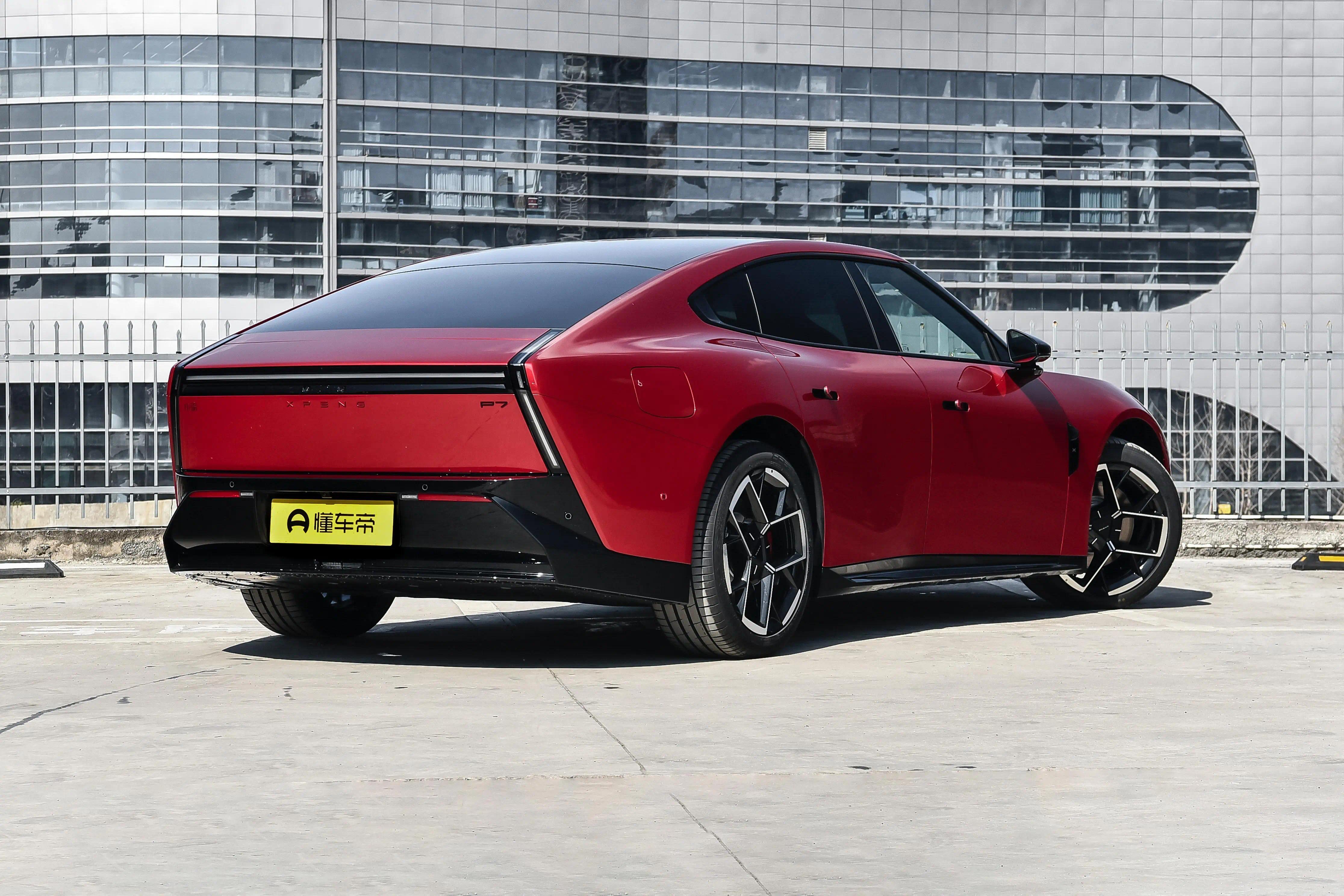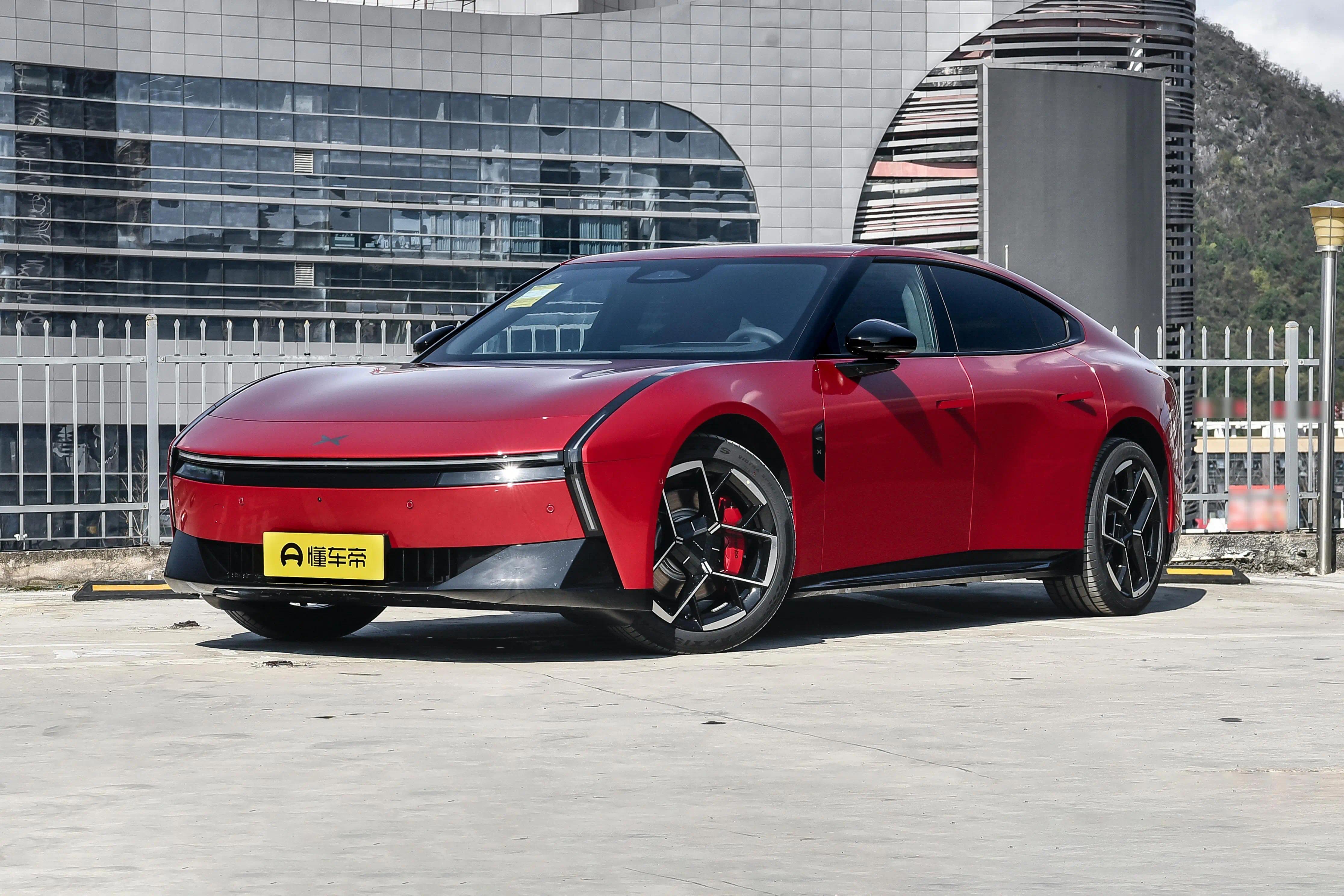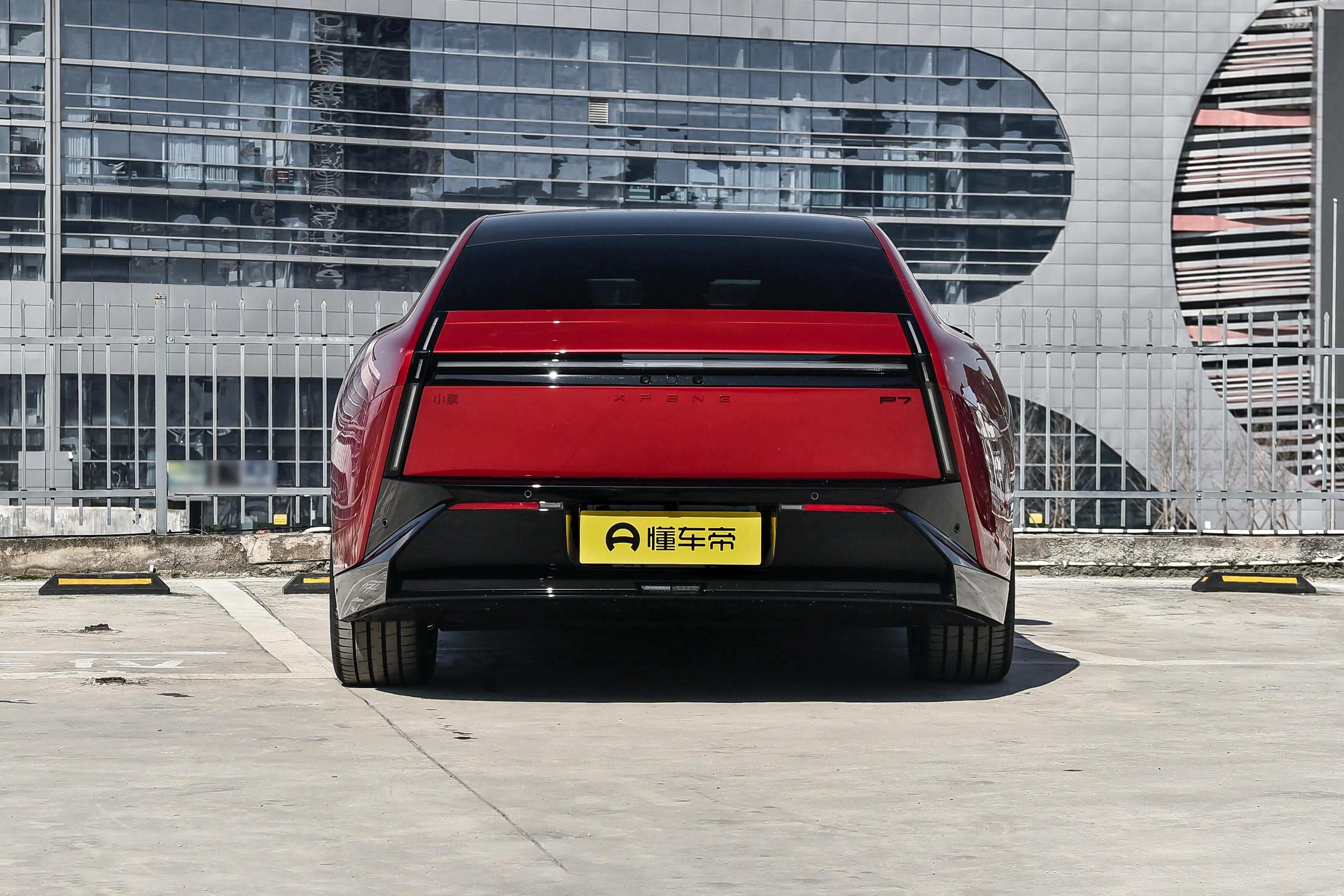 侧面造型方面,车顶采用了大溜背造型,线条感显得比较干练;腰线采用了贯穿式设计,从前翼子板延伸到车尾,让视觉效果显得修长大气;门把手采用了弹出式设计,能够起到降低风阻的作用;轮眉和侧裙部分设计有隆起的筋线,带来了一定的肌肉感;轮毂则是四幅式造型,搭配红色卡钳进一步增强运动感。顶配车型还配备有鹏翼门,这也是小鹏性能车型的标志性设计。