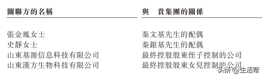 在关联方交易中,山东汉方制药股份有限公司表示,我们不时与我们的关联方订立交易。于往绩记录期间,我们的关联方主要包括我们的控股股东秦文基先生及秦银基先生、秦文基先生的配偶张金凤女士、秦银基先生的配偶史静女士;山东基源信息科技有限公司(“山东基源”)(由秦文基先生的外甥最终控股);及山东汉方生物科技有限公司(由Qin Chengxue教授最终控制51.0%权益的公司)。