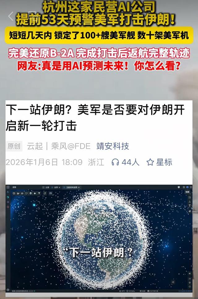 3月4日,据美丽浙江报道,浙江一家民营AI公司,提前53天预警美军打击伊朗,短短几天内,锁定了100多艘美军军舰,数十架美军军机。