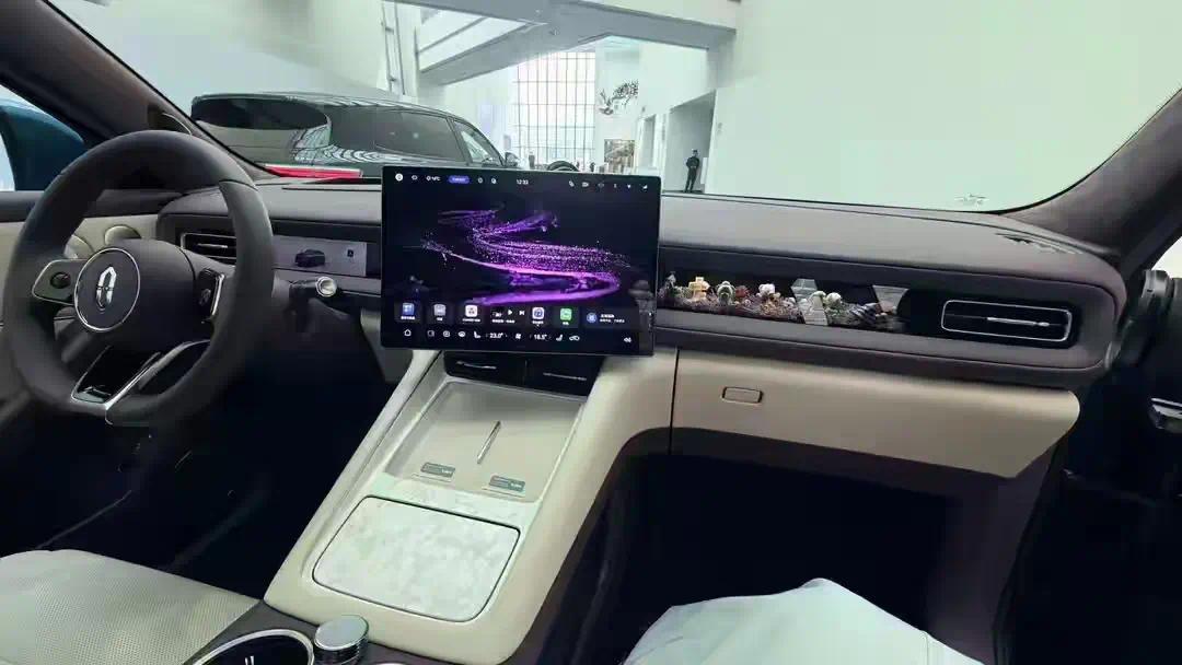 内饰方面,问界M6的中控台应用较多横向线条,中间为内凹样式,采用电子怀挡机构,配备内嵌式液晶仪表、可上下左右旋转的悬浮式中控大屏,副驾前方为“灵感橱窗”,可DIY手办玩偶、电子墨水屏或拓展副驾娱乐屏,还提供HUD抬头数字显示、星环散射体、双50瓦手机无线充电面板等。