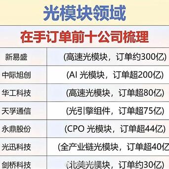 第十名的光库科技,订单都超过35亿。人家手里有给英伟达供货的铌酸锂调制器技术,硬气。